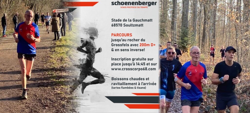 le cross Schoenenberger 7 février 2026au lieu dit « la Gauchmatt » dans la foret de Soultzmatt et sous un joli soleil printanier avant l’heure, 544 coureurs prets à en découdre sur un parcours qui ressemble à un mini trail de 8km300 avec ses sentiers techniques, ses rochers glissants et un dénivelé de 200m.